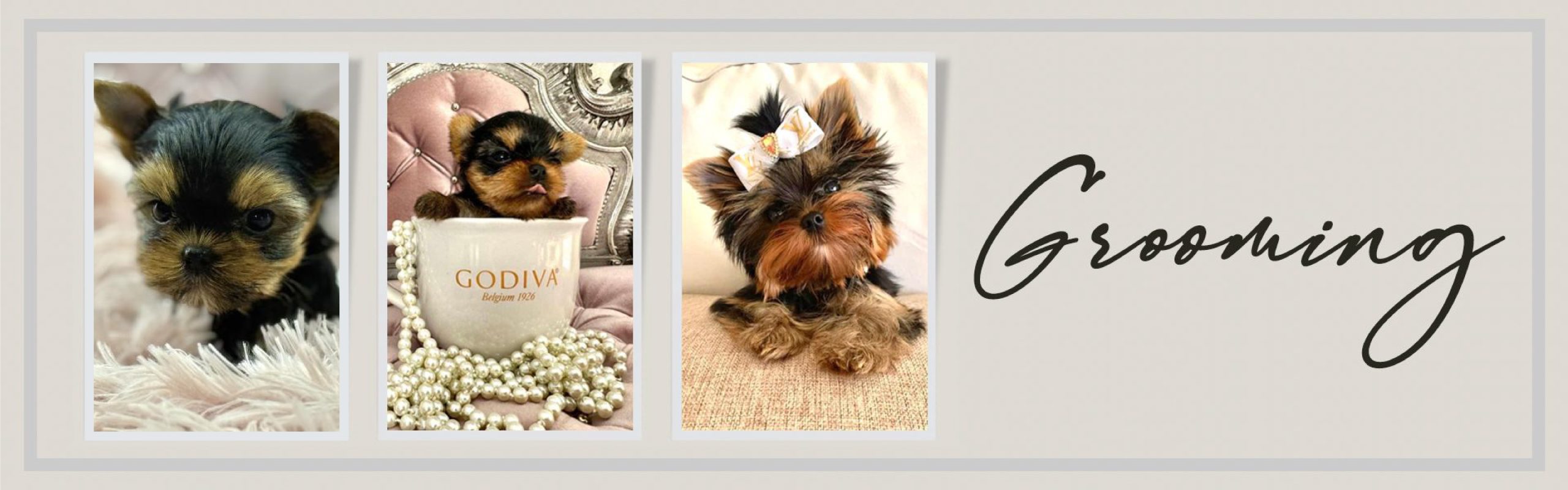 Yorkshire Terriers are some of the highest maintenance dogs if left in full coat. They have real hair just like humans, and require daily brushing and weekly or bi-monthy bathing. Many owners choose to bring their Fur-Baby to a Groomer every 4-6 weeks for a “Puppy Cut” to keep this maintenance down. Whichever you decide to choose, they are all adorable either way!