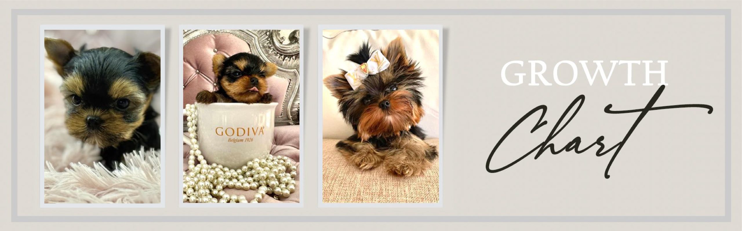 As a Breeder, my first and main concern is the health & well being of all of my babies, but for many of my puppy customers, this is the 1st subject that they ask me about. The Growth Chart below is just an estimate for what you can expect for your puppy, and as a Breeder, I can never guarantee size and weight. My babies from a typical litter average between 4-6 lbs full growth, and on occasion, I have babies that are smaller.