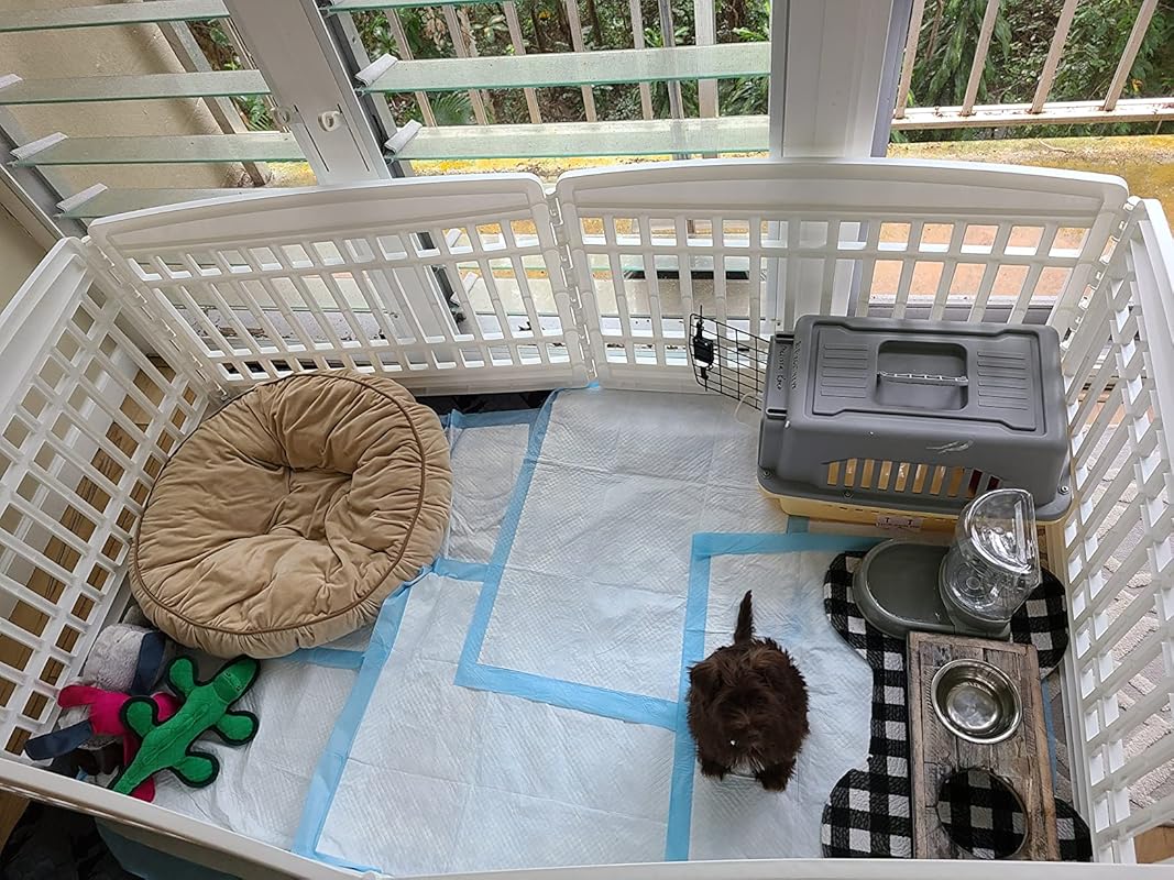 Iris pet playpen add-on panels help build the perfect play area for puppies, extra small to medium sized dogs and other family pets. Use the panels to create or add to an indoor dog Fence, play gate, dog play yards, or dog exercise Pens. The panels for the portable playpen provide plenty of play space for pets. The panels come in sets of two and each one measures 33. 6″W x 24″H, while the distance between bars is 1. 7”. The heavy-duty molded indoor pet pen panels will last for years. Pet panels can be positioned in different shapes and added to New IRIS pet Playpens, ci-604e to best suit your space capacity and pet’s needs. The plastic panels securely snap together to keep your pet inside. The Add-On panels also feature a non-skid rubber foot to protect flooring. Made in the USA.