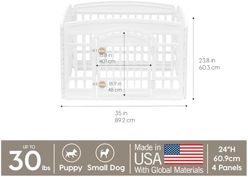 The IRIS USA 24″ playpen is perfect for small dogs or puppies, providing a safe and secure space to play or rest. Easy to set up and move, it’s durable and convenient for both indoor and outdoor use.