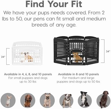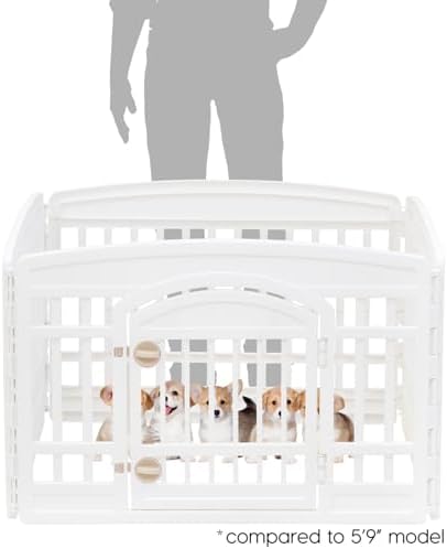 Give your small to medium dog a secure, spacious place to play and unwind with the IRIS USA exercise playpen. Designed for breeds like Beagles, French Bulldogs, Shiba Inus, Border Collies, and similar sizes, this tall 35″ pen offers extra security for pets that are more active or prone to jumping. With durable, heavy-duty panels and a roomy 63″ x 63″ interior, it’s perfect for indoor or outdoor use as a dog fence, play yard, or exercise area. The built-in front-panel door makes access easy, while non-skid rubber feet help protect floors and keep the pen firmly in place. A strong, smart solution for giving your pet freedom without sacrificing safety.