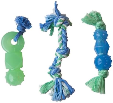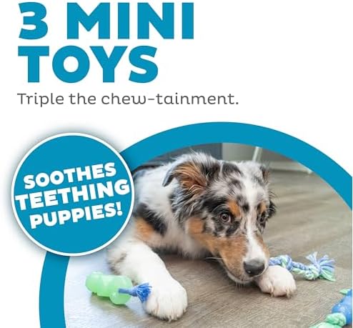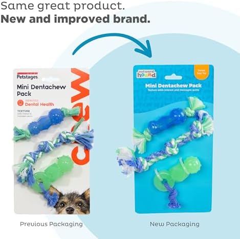The Outward Hound Mini Dentachew Pack offers three dental chews for triple the chew-tainment! The perfect size for small dog breeds or puppies small, medium, and large, the variety of toys and fun textures keep chew time interesting while helping support your canine’s teeth. Toss, fetch, tug, and chew – whatever your dog decides – these interactive dog toys help bust boredom and keep dogs busy for long-lasting fun. Chewy Orka material helps massage gums – ideal puppy teething toys for teething puppies – while textures and rope help clean teeth. A win-win in our book! Keep your super chewer pup entertained with the Outward Hound Dentachew Multipack. SAFETY & CARE: This is a non-edible play toy. When choosing a toy, make sure to choose an appropriate size toy for your dog. As with any chew toy, we recommend monitoring your dog’s use and replacing after reasonable wear, no toy is indestructible. ALWAYS supervise your dog when using a toy of any kind. Remove if excessive chewing occurs or if pieces larger than a piece of rice are chewed off. Know your dog’s chewing habits, your pet’s safety is your responsibility. For dogs only. Keep out of reach of children.