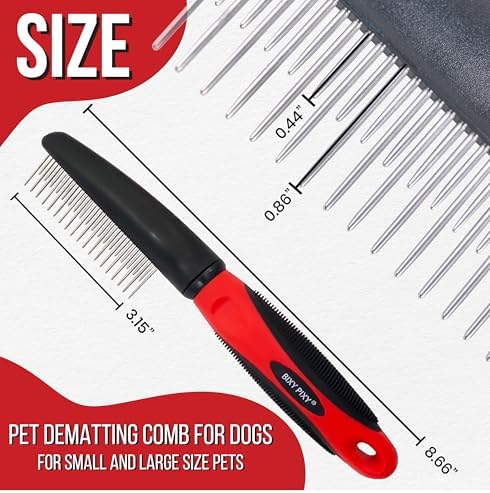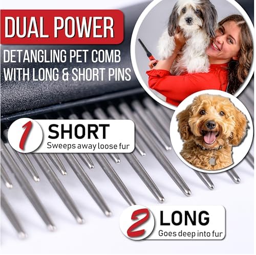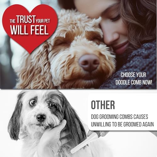 Feature | COMFORTABLE GRIP HANDLE – Designed with love and care. Lightweight handle ensures a comfortable grip and reduces hand fatigue when using for matted hair. Handle features a soft, rubberized, Non-slip texture for a secure and comfortable hold, even when hands are wet. This poodle comb features a long handle and allows to groom hard-to-reach areas on your pet's body and easy maneuverability. Spend less time struggling with knots and more time with your pet |