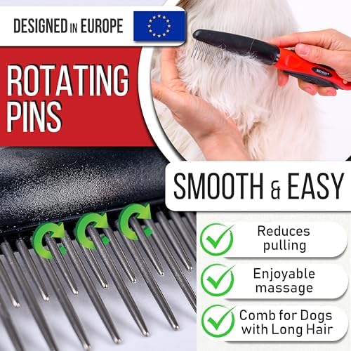 Target Audience Keyword | Cats love it too – Effective dematting comb for cats with long fur, Detangling Comb with rotating teeth, Dog Comb for grooming matting and shedding, Ergonomic handle with Non-slip rubber ensures a firm, comfortable grip preventing hand fatigue – giving you total control for effortless, stress-free grooming., Pet Comb removes mats and tangles with gentle touch, dogs |