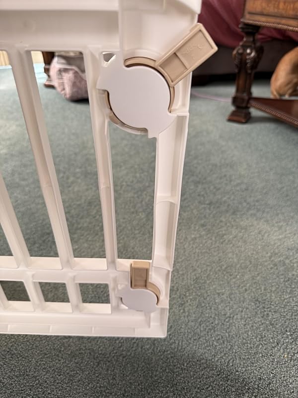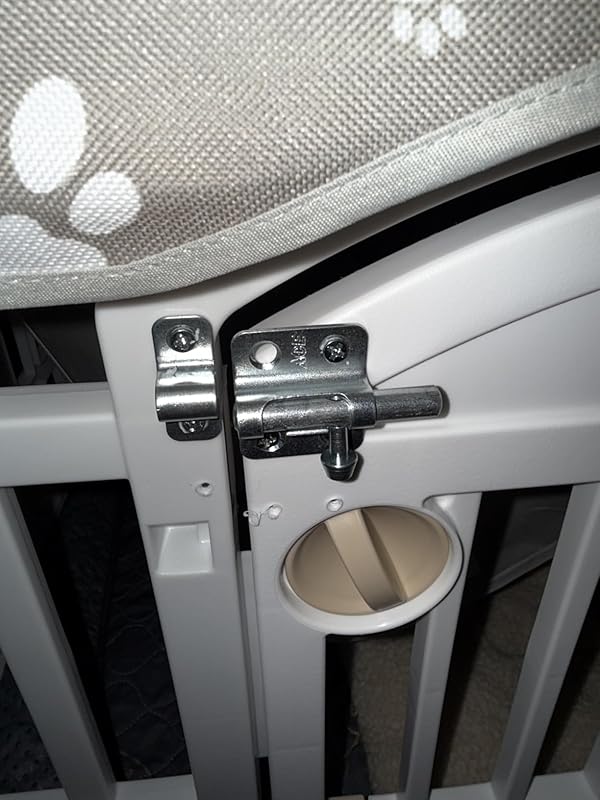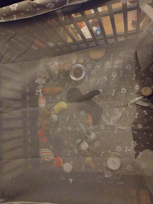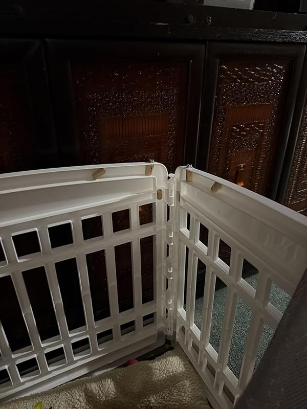 My puppy chihuahua mix is an escape artist. Could be why he was found wondering the streets at 11 weeks old. I had a pen that was 34 inches tall and he climbed out, so I returned it. I ordered this pen/topper combo. So cute! But he hates being confined and only wants to sleep with me. 1. He still escaped as the Velcro didn’t make the top taunt. So I bought marine snaps like you use for a boat cover.2. Those snap screws are super sharp, so I bought wooden dowels to screw into as caps so he wouldn’t get scratched.3. Then he learned how to rotate the lock knobs with his nose and paws. So I had to use a a slide lock on the outside of the door.4. On the bottom floor, the Velcro was sticky back and wouldn’t stay attached to the crate, so I staple gunned it and flattened the underside of staples.I’ve included pics for anyone who needs to fortify their set up. Everything came from Amazon except the slide lock. The last picture is his ride home from the adoption event.I did replace the splintered dowel in the 5th picture.I won’t even get into all the fence reinforcements I’ve had to do! Had no idea how a shelter adoption day at Pet supply plus was going to change my life!